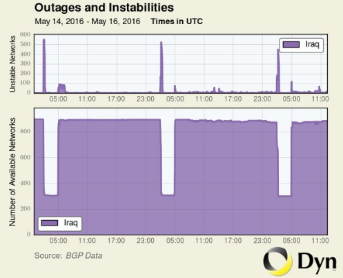 Theo TheVerge, mạng Internet tại Iraq được ngắt gần như toàn bộ vào lúc 5 giờ đến 8 giờ các ngày 14, 15 và 16/5 giờ địa phương. Tổ chức nghiên cứu DYN cho biết, đây là nỗ lực của chính phủ nước này nhằm ngăn chặn tình trạng gian lận trong các kỳ thi.