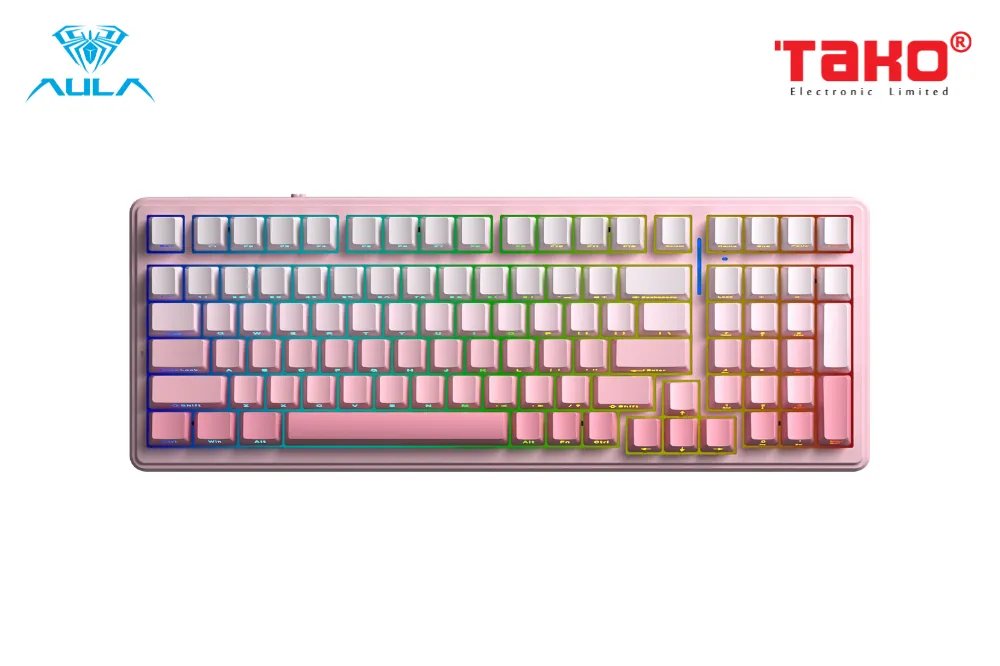 AULA F99 (2056) BÀN PHÍM CƠ GAMING 3 MODE (Phiên bản màu Hồng gradient/ Dream Sakura switch)
