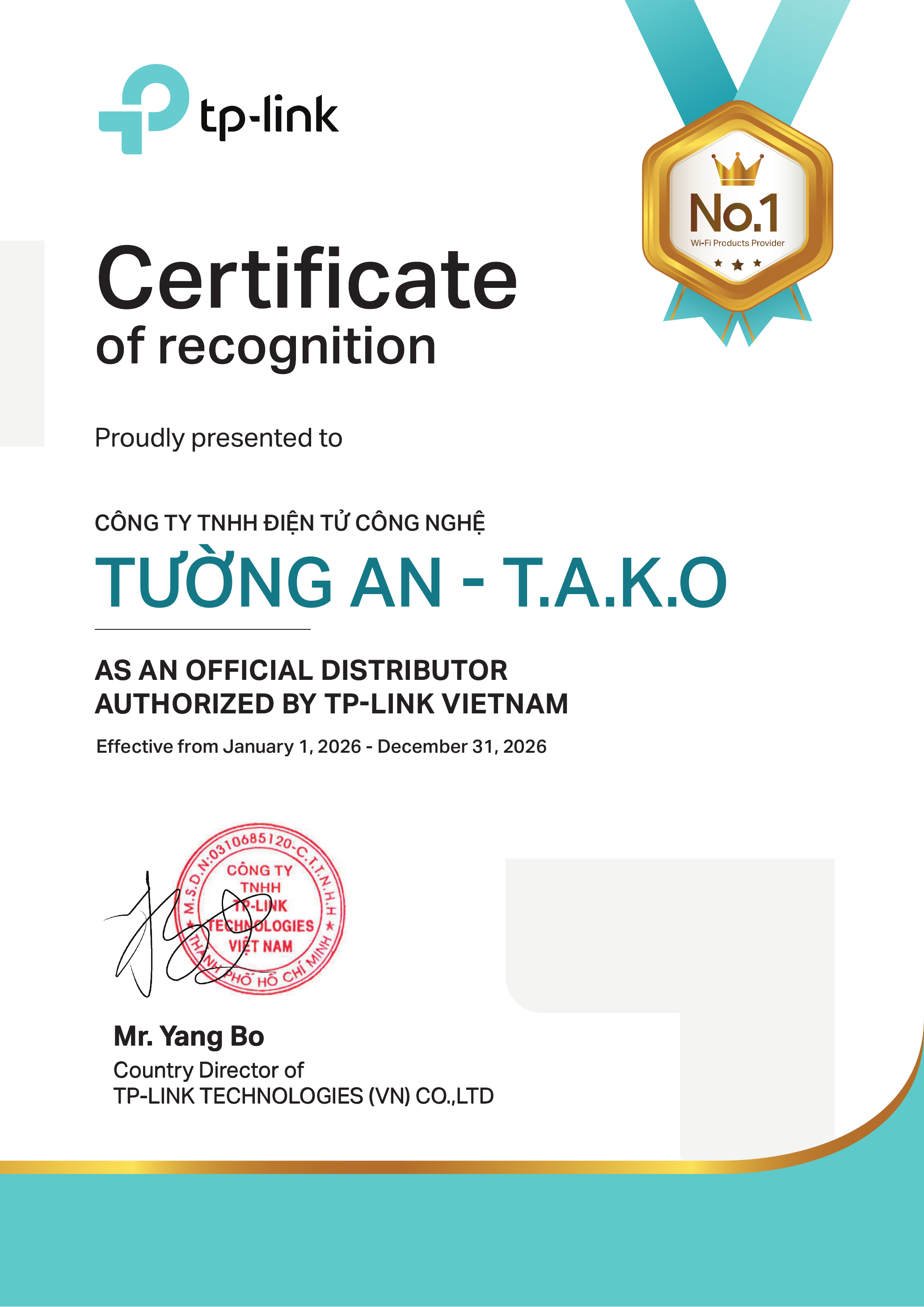Chứng Nhận Nhà Phân Phối TP-Link Tại Việt Nam